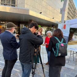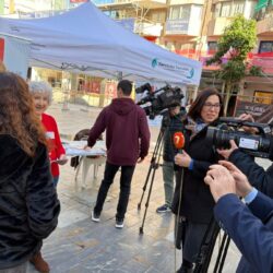 En la carpa, instalada durante la mañana, contamos con Dña. Pilar Torres, quien junto a nuestra presidenta Puri Titos, atendieron a los diferentes medios de comunicación que se acercaron hasta allí.